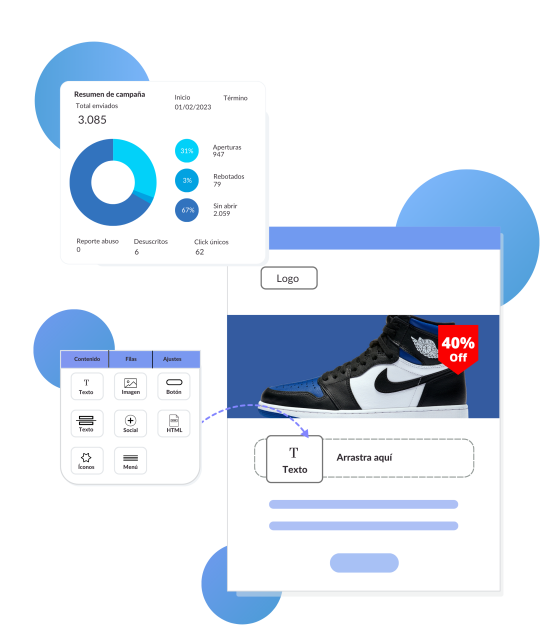 Diseñar campañas de email con plantillas predeterminadas y editor asistido.